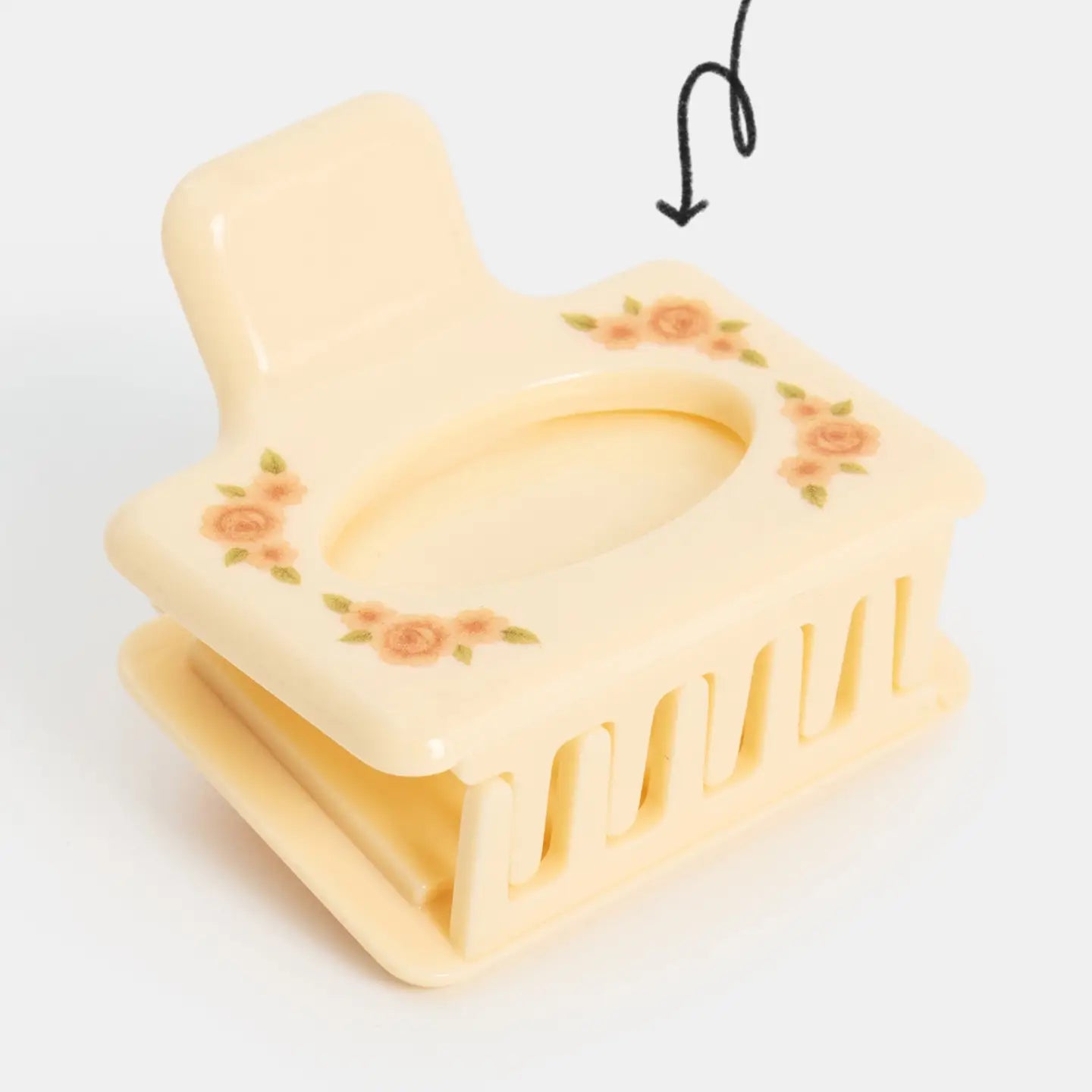 This hair claw is reminiscent of ceramic photo frames with an actual oval frame opening perfect for displaying a cherished mini photo. Small-ish in size, big in grip. Recommended for all hair types and textures.